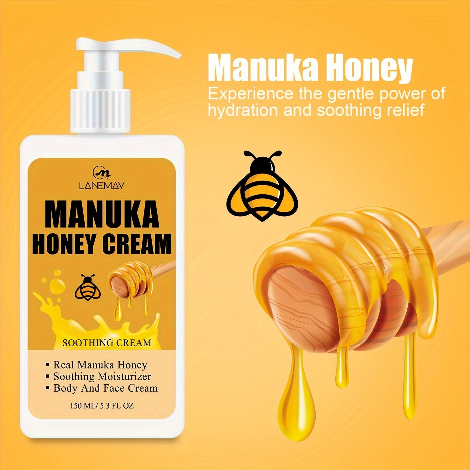 150ml Manuka Honey Nourishing Moisturizing Cream - Intense Hydration for Dry Skin, All-Day Softness - Unisex Daily Skin Care Lotion
